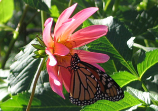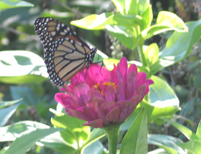 Monarchs enjoyed the zinnias and dahlias in the butterfly garden.