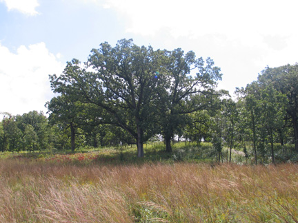 Where the prairie meets the oak trees is where the monarchs stayed.