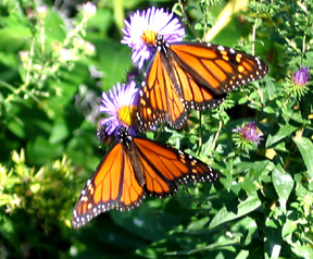 Two monarchs enjoy the New England purple asters.