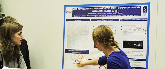 As a Drake student, you will also have the opportunity to present your personal research at the annual Drake University Conference on Undergraduate Research in the Sciences (DUCURS) as well as regional and national meetings.