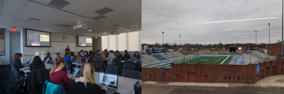 With one of the best views on campus, this classroom is highly coveted among our programs. As one of the most technologically advanced classrooms on campus, there isn't a bad seat in the house! This mid-sized classroom is a good example of what you'll experience in class sizes at Drake - small enough to get the individual attention you crave, but not so small that you are cramped for space. And that view...oh that view! Imagine watching the Drake Relays or a football game from the indoor comforts of this space.