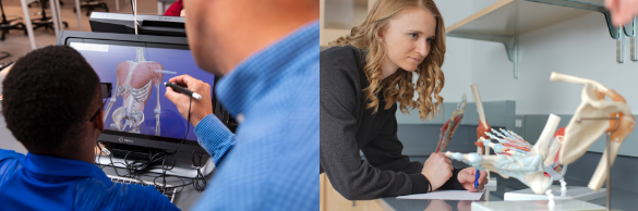 Our anatomy lab uses state-of-the-art technology to help you dissect and explore the human body. Our 3D Z-Space technology allows you to control which systems you see, and acts like an online textbook, providing information about any bone, muscle, tissue, organ, or any other system you want to learn about. It's better than a cadaver - if you cut something wrong, you can put it back together! Plus, you don't smell like formaldehyde and you don't have to shower after every lab.