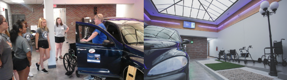 Yes...we have a car in the building! Independence Plaza is a flexible space that provides opportunities for you to learn about Occupational Therapy's role in community mobility. Our "OT Cruiser" is a unique part of this space, as it allows you to develop your skills in car transfers and transportation. Independence Plaza also provides space for our fleet of wheelchairs, including standard and electric wheelchairs, which you will use to navigate the tasks of providing appropriate community mobility options for your clients.