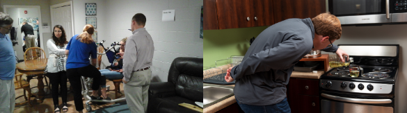 This fully functioning one-bedroom apartment is an ideal space for a variety of activities in our OTD program! You will find yourself in this space frequently, as we use it for class and lab activities, and host many community engagement events here. As an OTD student, you will learn how to help people participate in their activities of daily living, no matter what their needs are. This is a perfect space to practice your skills in helping your clients stay independent and live the life they want to live!