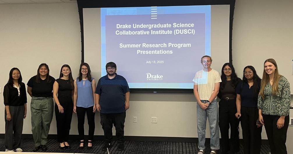 Funding for the DUSCI Summer 2025 Research Fellowships was provided by the College of Arts & Sciences, College of Pharmacy & Health Sciences, Drake's President's office, Dr. Cody & Julie Koch, and Dr. Michael Myszewski & Dr. Martha James. Thank you!