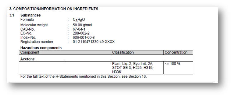 Section 3 includes information on chemical ingredients and any trade secret claims.