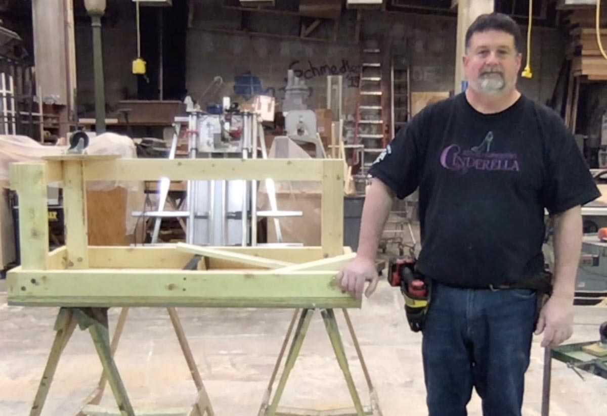 Drake Theater Arts Professor John Pomeroy’s stagecraft made the switch to virtual learning this spring, requiring Pomeroy to replicate and act out students’ final projects. The above image is from a demonstration video Pomeroy recorded on how to construct a wagon. The video, with a corresponding quiz, took the place of a traditional, hands-on project.