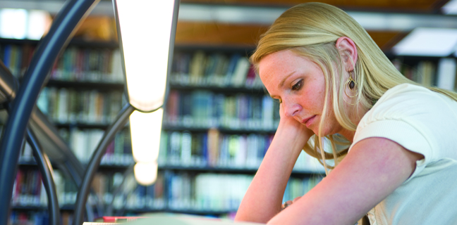 The library accommodates a wide variety of learning styles with different kinds of study spaces and a robust collection of print and online study aids.