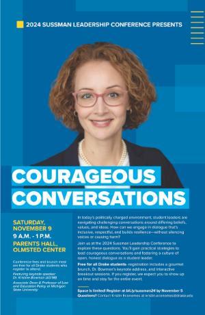 The Sussman Leadership Conference provides all Drake undergraduates with an opportunity to enhance their leadership skills, knowledge, and network. Each year, this half-day conference is focused on a theme that helps students gain and apply skills to increase their effectiveness as leaders, both on campus and in preparation for their future careers.