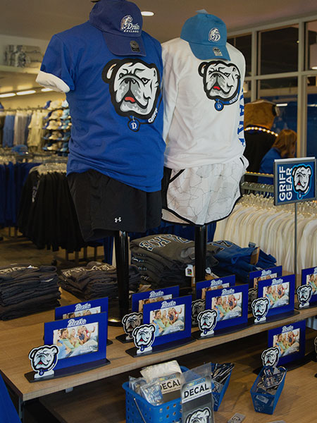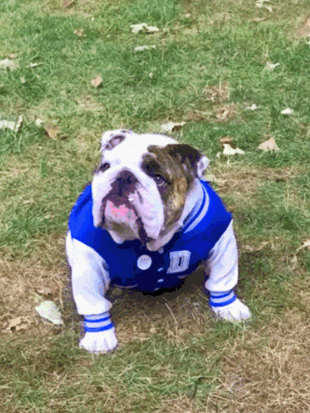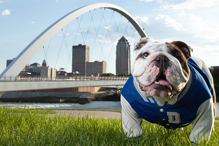 He’s Drake’s live bulldog mascot, he represents the entire University throughout the whole year. You can spot him at campus events, at sporting events, at graduation, making the rounds in the community, and even getting his favorite "pup-a-chino" at the campus Starbucks.