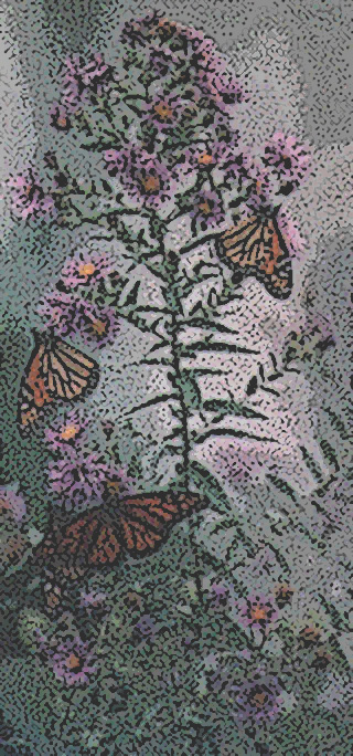 Purple asters and monarch butterflies--what
