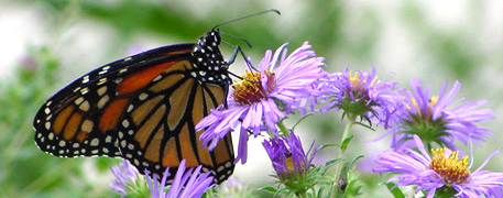 Migrating Monarchs Stopped Off in the Butterfly Garden on September 16 and 17, 2001 September 17--The sharp change in the weather diminished the monarch count to four in our butterfly garden. A rain and cooler days appeared to contribute to the departure of many monarchs for warmer areas. September 18--For the first day, no monarchs were sighted. The cool weather and intermittent rain likely contributed to the situation. But I was reminded of how things change so quickly in the migrating season. A friend told me about his own observations on Saturday morning, September 15, on a day when I had seen large numbers of monarchs in central Iowa. He was playing golf on a course in West Des Moines when he noted what he described as thousands of monarchs roosting in a protected corner of the course around 11 a.m. He said the monarchs were so heavy on the trees in the protected area that it reminded him of photographs he had seen of monarchs in their overwintering site in Mexico. September 19--The overcast sky cleared by afternoon, and five monarchs spent the late afternoon in our butterfly garden. September 20--Family, friends, and students continued to tell me about their observations of monarchs in central Iowa. The sightings often were one or two monarchs at a time, but a substantial number of sightings were reported across the area. At the end of the day, a single monarch spent more than an hour on the purple asters in our butterfly garden. September 21--No monarchs were seen. September 22--One monarch observed along the roadway, and one monarch was in the butterfly garden. September 23--Cooler and rainy weather meant no monarch sightings on this day. September 24--A cold front pushing in from Canada was bringing lower temperatures and a forecast for frost over much of the state of Iowa by evening. September 25--Much cooler weather--down into the high 30s and low 40s Fahrenheit overnight across Iowa--appeared to have halted monarch activity. September 26--No monarchs. September 27--A single monarch was observed in our butterfly garden during the late afternoon. It was feeding on the purple asters. September 29--Two monarchs were seen during the day Saturday. September 30--A friend saw several monarchs on Sunday. But the monarch activity clearly has subsided as the month ends.