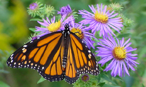 At left: Monarch Butterfly Feeds on Goldenrod at Neal Smith National Wildlife Refuge |