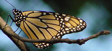 Monarch Migration Can Be A Topsy-Turvy World September 8--This Saturday was an extraordinary day. Early in the morning before the sun rose, heavy rain continued to fall, but as the day dawned, the clouds began to break up, and several monarchs came out of hiding in the butterfly garden in Altoona. A late-morning visit to Chichaqua Bottoms wildlife area in northeast Polk County turned out to be highly productive for monarch watching. After several days of being slowed in their journey by the heavy rain and strong winds, the monarchs suddenly were on the move again. First arrival at Chichaqua gave no signs on the ground that anything was different in the monarch movements, but eyes to the sky told another story. Between 10:50 a.m. and 11:50 a.m., 923 monarchs were counted in the sky heading south--many with the naked eye but others with binoculars. At several points, the monarchs came over so fast there's no doubt the "count" was conservative in relation to the many butterflies moving overhead. Often, they could best be seen when their flights were against an ever-changing cloudy background, but as the sky cleared, they were more difficult to see against the crystal blue sky. A look at the Iowa map hinted at their possible story. On Friday afternoon, some of the heaviest wind damage and rain occurred in the community of Nevada and surrounding areas to the north. The monarchs must have been waiting for the all-clear weather before they moved on to the south over Iowa. And move they did--racing at 500 to 1,000 feet in groups of 10 to 15 and as singles, doubles, and triples. Nine-hundred of the monarchs were counted in the first 40 minutes, and then the flurry seemed to slow. What a sight! Later, on the roadways in Polk, Marshall, and Jasper Counties in central Iowa, hundreds of monarchs were observed as singles and in pairs moving across the land. September 9--Rain again in the morning slowed the movement of any monarchs. A visit to Chichaqua Bottoms wildlife area at mid-day indicated how timing can make a difference. After yesterday's fantastic sightings at Chichaqua, only a single, high-flying monarch was observed this Sunday. Later in the day as the sky cleared, seven monarchs--all singles--were seen high in the sky heading south over Altoona, Iowa. Perhaps 5 to 10 monarchs continued to stay around our butterfly garden. September 10--A late-afternoon visit to the Neal Smith National Wildlife Refuge turned up approximately 100 migrating monarchs feeding in one area. Unlike previous times this fall, when monarchs stopping at the refuge were observed feeding primarily off the tickseed sunflowers, this time the monarchs were favoring the goldenrod. They were in a stand of goldenrod stretching over perhaps 100 yards in a small valley along a park roadside. The observation time was 4:30 p.m. to 5:30 p.m. The afternooon sun was warm, and the wind was blowing lightly as the monarchs flew gently from flower to flower. Later, near dusk, 10 monarchs were seen roosting on the branches of a pin oak tree in our butterfly garden. September 11--A day of national tragedy as the twin towers of the World Trade Center in New York and the Pentagon in Washington were attacked. |