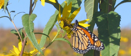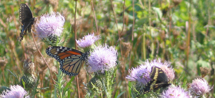 September 1--Monarchs were observed flying into the north part of Neal Smith National Wildlife Refuge as the fall migration continued to expand. Seventy monarchs were counted during an hour and one-half visit to the refuge. Monarchs were nectaring on thistles and tickseed sunflowers, and others were observed flying and floating across the prairie's big bluestem grasses.