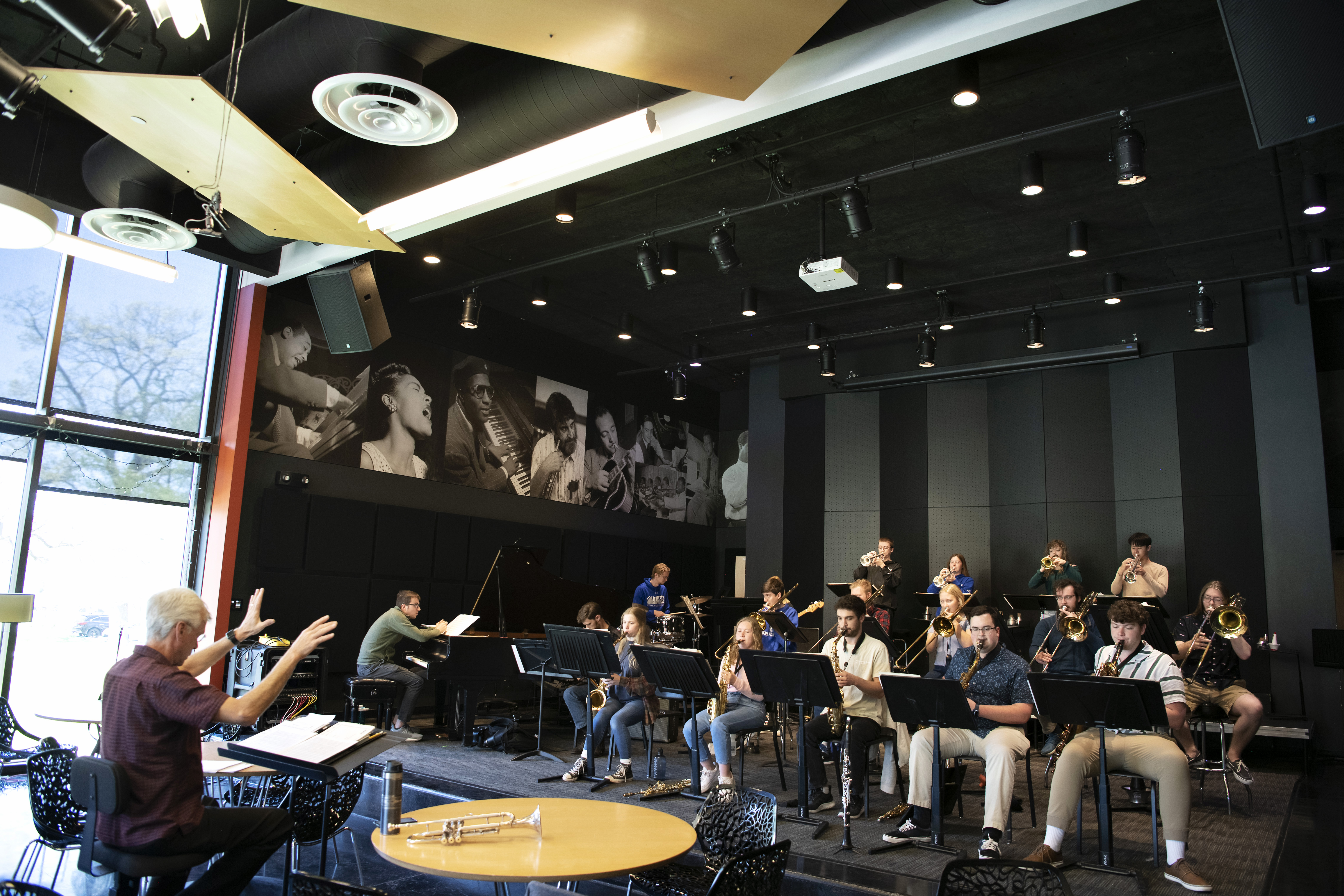 The Patty & Fred Turner Jazz Center is home to Drake Jazz I and Jazz II. It was acoustically designed specifically for jazz performances. All jazz classes and ensemble rehearsals take place in this space. It is also a state-of-the art recording facility, rivaling professional studios. Drake Jazz I utilizes these recording capabilities throughout the school year, and each semester, the ensemble produces an album's worth of studio quality recordings with videos, which are posted on YouTube.