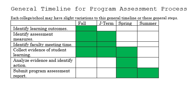 Each college/school determines the schedule for assessment that best fits faculty workflow.