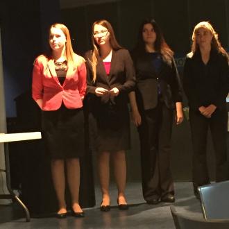 Photo Caption: Jamie, Alliyah, Gabriella, and Katie during their presentation to the campus community.