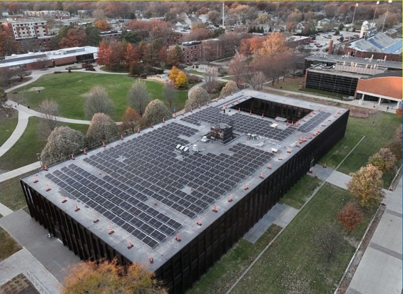 The first solar project was implemented in 2019 at the Roger Knapp Tennis Center. There is a 128.02 kW solar array that effectively makes the Tennis Center a Net-Zero Building. You can track in-time energy generation here.