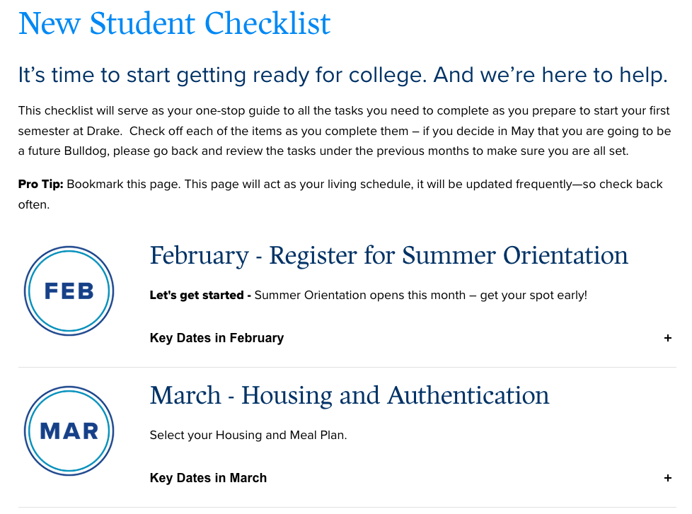Review the New Student Checklist now>>